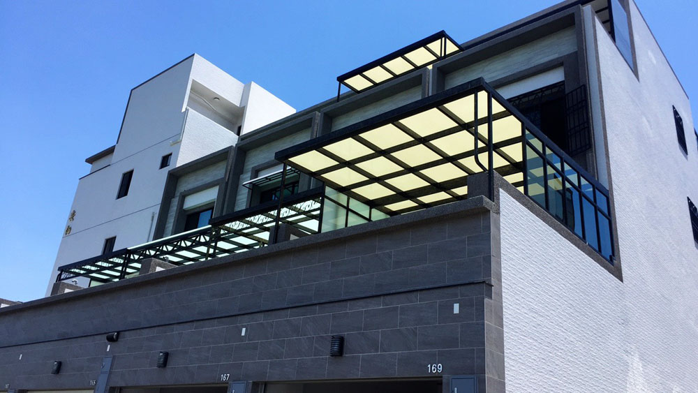 本工程為玻璃採光罩施工,依據建築環境與採光需求規劃結構配置,使空間在遮雨的同時仍保有良好自然光線。施工時完成鋼構骨架與玻璃面板安裝,並進行邊緣防水處理,使採光罩在耐候與防水性能上更加穩定。